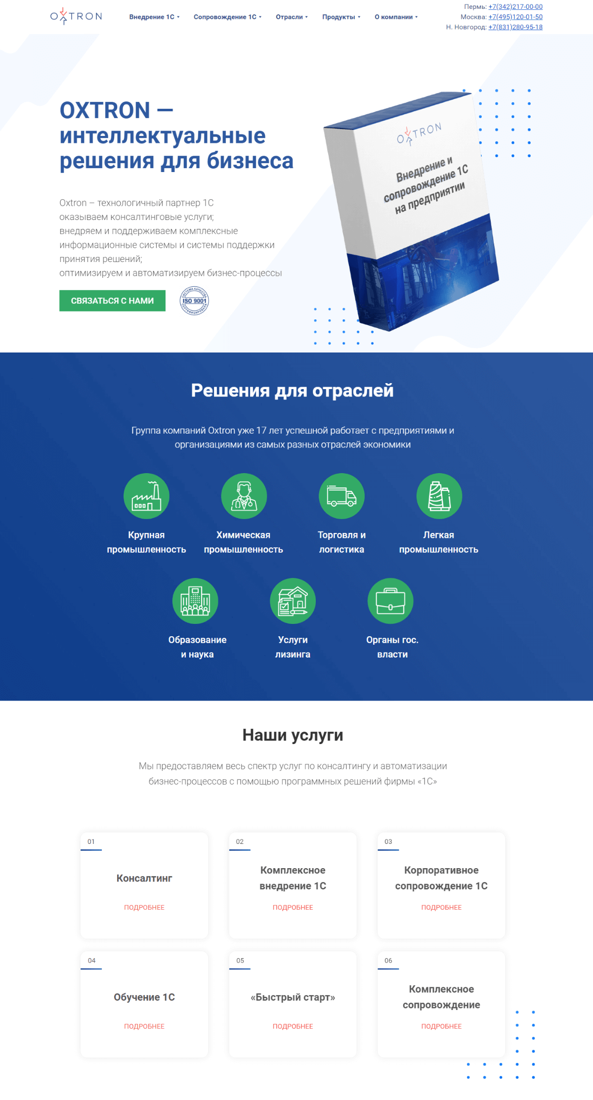 Первый экран главной страницы сайта oxtron.ru